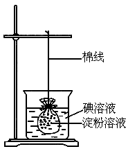 现有一种由人工膜制成的袋,为检测淀粉和碘能否透过该膜,现提供试剂和用品如下:铁架台、烧杯和人工膜袋各一个,1%的淀粉溶液、稀碘溶液和细棉线。