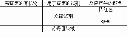 (5)某些化学试剂能够使生物组织中的有关有机化合物产生特定的颜色反应。请填写表格中关于蛋白质、糖类和脂肪检测的试剂或出现的颜色。