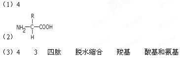 ⑶该化合物由 个氨基酸分子失去 个分子的水而形成,此化合物准确称为 ,这种反应叫 反应。水分子中的氧来自于______ _ ___,氢来自于_____ ______。