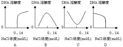 下列能够反映DNA溶解度与NaCl溶液浓度之间关系的是