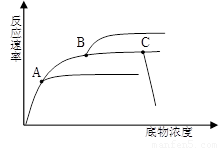 £¨5£©Í¼2±íʾÂܲ·µÄ¹ýÑõ»¯ÇâøÔÚÌåÍâµÄ×îÊÊÌõ¼þϵ×ÎïŨ¶È¶ÔøËù´ß»¯·´Ó¦µÄËÙÂʵÄÓ°Ïì¡£ÇëÔÚͼÉÏ»³ö£º¢ÙÈç¹ûÔÚAµãʱ£¬½«Î¶ÈÌá¸ß5¡æÊ±µÄÇúÏ߱仯£»¢ÚÈç¹ûÔÚBµãʱ£¬Íù·´Ó¦»ìºÏÎïÖмÓÈëÉÙÁ¿Í¬ÖÖøµÄÇúÏ߱仯£»¢ÛÈç¹ûÔÚCµãʱ¼ÓÈë´óÁ¿pHΪ1£®8µÄHClµÄÇúÏ߱仯¡£