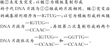 亚硝酸盐可使DNA的某些碱基脱去氨基,碱基脱氨基后的变化如下:C转变为U(U与A配对),A转变为I(I为次黄嘌呤,与C配对)。现有一DNA片段经亚硝酸盐作用后,若链①中的A、C发生脱氨基作用,经过两轮复制后其子代DNA片段之一为