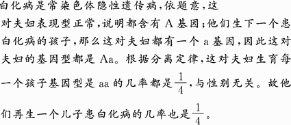 一对表现型正常的夫妇,生下了一个患白化病的孩子,预计他们再生一个儿子患白化病的几率是