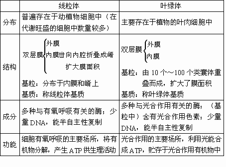 解析 从选项的设置看,本题可分解成四个子问题:(1)从结构上,(2)从功能上,(3)从成分上,(4)从分布上分别比较线粒体和叶绿体,然后将四个子问题的答案组合起来,构成问题的答案。列表比较如下: