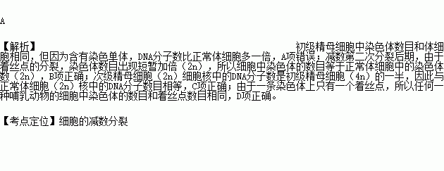 D.任何一种哺乳动物的一个细胞中染色体的数目和着丝点数目相同