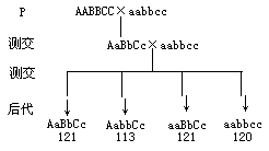 再与隐性类型乙测交,得到如下结果:AaBbCc121只,AabbCc113只,aaBbcc121只,aabbcc120只,则