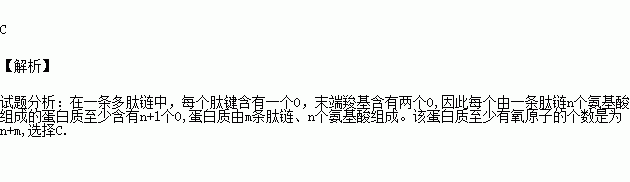 某蛋白质由m条肽链、n个氨基酸组成。该蛋白质至少有氧原子的个数是( )