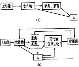 (2)b 图(b)所示生态系统中流向分解者的能量,还有一部分可以以生活能源或食物中的化学能的形式被人类再度利用