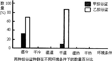£¨05È«¹ú¾í¢ó£©£¨21·Ö£©£¨2£©Äâ¹ÈµÁÊÇΣº¦Á¸Ê³µÄÒ»ÀàÀ¥³æ£¬ÏÖ½«¼×¡¢ÒÒÁ½ÖÖÄâ¹ÈµÁµÈÁ¿»ìÑøÔÚ²»Í¬»·¾³Ìõ¼þϵÄͬÖÖÃæ·ÛÖС£ÅàÑøÒ»¶Îʱ¼äºó£¬·Ö±ðͳ¼ÆÁ½ÖÖÄâ¹ÈµÁÖÖȺµÄÊýÁ¿£¨ÒÔÁ½ÖÖÄâ¹ÈµÁÊýÁ¿×ܺÍΪ100£¥£©£¬½á¹ûÈçÏÂ±í£º