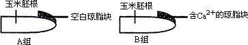 (1)实验材料和用具:胚根等长的萌发玉米种子,含EDTA的琼脂帽,含Ca2+的琼脂块,空白琼脂块,培养皿等。