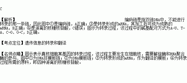 下图表示真核细胞某基因的转录过程。有关叙述错误的是( )