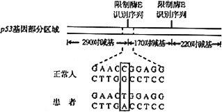 £¨3£©ÒÑÖªÏÞÖÆÃ¸Eʶ±ðÐòÁÐΪCCGG£¬ÈôÓÃÏÞÖÆÃ¸E·Ö±ðÍêÈ«ÇиîÕý³£È˺ͻ¼ÕßµÄp53»ùÒò²¿·ÖÇøÓò£¨¼ûÉÏͼ£©£¬ÄÇôÕý³£È˵ĻᱻÇгÉ________¸öƬ¶Î£»¶ø»¼ÕßµÄÔò±»Çиî³É³¤¶ÈΪ________¶Ô¼î»ùºÍ________¶Ô¼î»ùµÄÁ½ÖÖÆ¬¶Î¡£