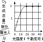 (4)请据表中数据,在图方格内绘制O2生成总量和光强度间关系曲线。(2分)