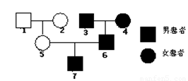 下图为患红绿色盲的某家族系谱图,其中7号的致病基因来自