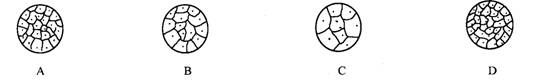 若用同一显微镜观察同一标本四次,每次仅调整目镜或物镜和细准焦螺旋,结果如图。试问其中视野最亮的是( )。