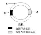 质粒是基因工程中最常用的运载体,它存在于许多细菌体内。质粒上有标记基因如图所示,通过标记基因可以推知外源基因(目的基因)是否转移成功。外源基因插入的位置不同,细菌在培养基上的生长情况也不同,下表是外源基因插入位置(插入点有a、b、c),请根据表中提供细菌的生长情况,推测①②③三种重组后的细菌的外源基因插入点,正确的一组是