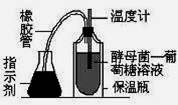 一位学生将葡萄糖和酵母菌溶液放入一个保温瓶中,并用带有两个孔的塞子封口。下列判断正确的是