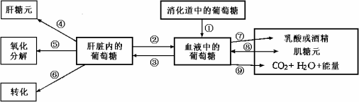下图示人体糖代谢的部分过程,图解存在的错误是