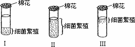 用培养液培养三种细菌,让它们在三个不同的试管中生长,下图显示了细菌的生长层。如果此时往三支试管中通氧气,则细菌的繁殖速度将如何变化