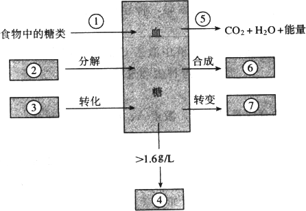如图为血糖的来源和去路示意图,请根据图回答下面的问题。