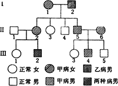 下图是患甲病(显性基因为A,隐性基因为a)和乙病(为伴性遗传病,显性基因为B,隐性基因为b)两种遗传病的系谱图,据图回答: