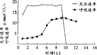 在充满N2与CO2的密闭容器中,用水培法栽培几株番茄,CO2充足。测得系统的呼吸速率和光合速率变化曲线如下图,请回答问题。