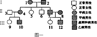 下图一为甲病(显性基因A,隐性基因a)和乙病(显性基因B,隐性基因b)两种遗传病的系谱。请据图回答: