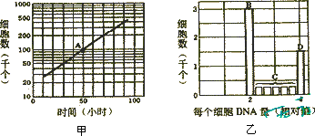 从图甲的A点取出6000个细胞,测定每个细胞的DNA含量,结果如图乙.图乙的B、C、D中,表示处于S期的是________,表示处于G2和M期的是________,表示处于G1期的是________.