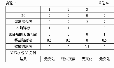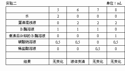 用蛋清制备一定量的混浊液,然后用其进行下列实验.实验处理和结果如下表所示.