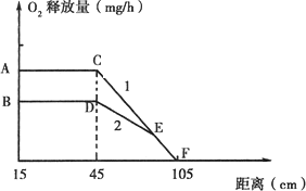 某实验小组用小球藻进行实验,探究影响光合速率的因素。他们将一定量的小球藻浸入适宜培养液的试管中,以白炽台灯作为光源。移动台灯改变光源与试管的距离;CO2浓度分别设置为0.03%和0.05%,根据实验结果绘制成曲线上曲线2:(见下图)。请分析回答: