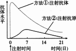 如图中的曲线显示了两种使人体获得免疫力的方法。据此判断下列说法正确的是