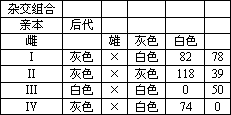 通过饲养灰鼠和白鼠(基因型未知)的实验,得到结果如下表,如果亲本一栏中杂交组合Ⅳ中的灰色雌鼠和杂交组合Ⅱ中的灰色雄鼠交配,结果是