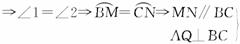 证明:作△ABC的外接圆,延长AP、AQ交外接圆于M、N,