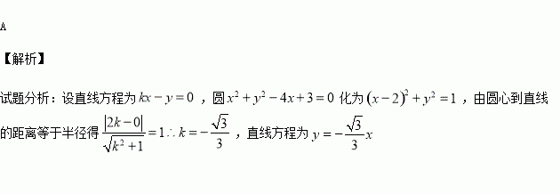 已知直线经过坐标原点,且与圆相切,切点在第四象限,则直线的方程为 ( )