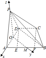 (II)解:取AB的中点M,连接OM,则OM∥BD,∴OM⊥平面PAD,∴OM⊥OA,OM⊥OP.