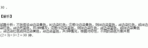 对一个各边长不相等的凸五边形的各边染色,每条边可以染红、黄、蓝三种颜色中的一种,但是不允许相邻的边染相同的颜色,则不同的染色方法共有 种.
