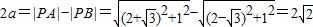 ,则2a=|PA|-|PB|,2c=|AB|.由此能求出双曲线C的方程.