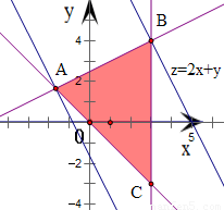 【答案】分析:作出题中不等式组表示的平面区域,得如图的△ABC及其内部,再将目标函数z=2x+y对应的直线进行平移,可得当x=-