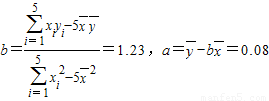 【答案】分析:(1)由已知表格中的数据,我们易计算出变量x,y的平均数,及xi,xiyi的累加值,代入回归直线系数公式