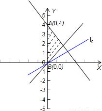 【答案】分析:再根据约束条件画出可行域,利用几何意义求最值,只需求出直线l过A(0,4)时l最大,k也最大为11,当直线l过B(0,0))时l最小,k也最小为3即可.