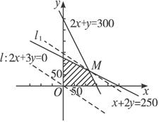 作直线l:600x+900y=0,即直线l:2x+3y=0,把直线l向右上方平移至l1的位置时,直线经过可行域上的点M,且与原点距离最大,此时z=600x+900y取最大值.解方程组