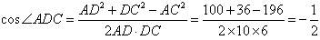 解:在△ADC中,AD=10,AC=14,DC=6,