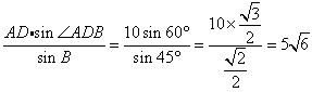 在△ABD中,AD=10,∠B=45°,∠ADB=60°,