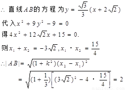 已知椭圆,过左焦点F作倾斜角为30°的直线交椭圆于A、B两点,求弦AB的长。