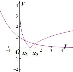 分析:先利用图象法确定两个零点x1,x2的取值范围,然后利用指数函数的性质进行判断.