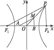 思路解析:判断轨迹形状,得解法一;点M是被动点,P是主动点且在已知曲线上得解法二相关点法(中间变量法). 解法一:(待定系数法)如图所示. ∵M是△PF1F2的重心,∴|OM|= 过M作MA∥PF1交x轴于A,过M作MB∥PF2交x轴于B.∴|PF1|=3|MA|,|PF2|=3|MB|. ∵P在双曲线上, ∴||PF1|-|PF2||=2a=6. ∴|3|MA|-3|MB||=6. ∴||MA|-|MB||=2< ∴点M是以A、B为焦点的双曲线,设其标准方程是 则2a=2,2c=|AB|= ∴a2=1,b2=c2-a2=( ∴点M的轨迹方程是x2- 解法二:(相关点法)设M(x,y),P(x0,y0). ∵M是△PF1F2的重心, ∴M分 ∴ ∵P在双曲线上, ∴ ∴点M在轨迹方程是x2- 深化升华 当动点M随点P变化而变化时,点P在已知曲线上,求动点M的轨迹方程,常利用相关点法(中间变量代入法).当题目中出现重心时,常用重心的性质:到顶点距离是到对边中点距离的二倍;三角形重心坐标公式.![]()