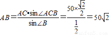 【答案】分析:依题意在A,B,C三点构成的三角形中利用正弦定理,根据AC,∠ACB,B的值求得AB