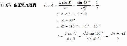 (本小题满分12分)在△ABC中,已知,,B=45°求及c 。