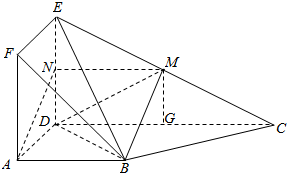 分析 (1)取DE中点N,连接MN,AN,由三角形中位线定理,结合已知中AB∥CD,AB=AD=1,CD=2,易得四边形ABMN为平行四边形,所以BM∥AN,再由线面平面的判定定理,可得BM∥平面ADEF.