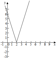 解:函数y=|3x-6|=$\left\{\begin{array}{l}3x-6,x≥2\\ 6-3x,x<2\end{array}\right.$,函数的图象关于x=2对称,如图:
